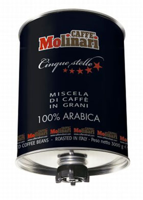 Ο Caffe' Molinari είναι στην ευχάριστη θέση να σας αναγγείλει ότι η σειρά του καφέ στην τροποποιημένη ατμόσφαιρα έχει εμπλουτιστεί - εκτός από το μίγμα 5 Αστέρων - με τον 100% Arabica σε βαρελάκι αζώτου 3kg.